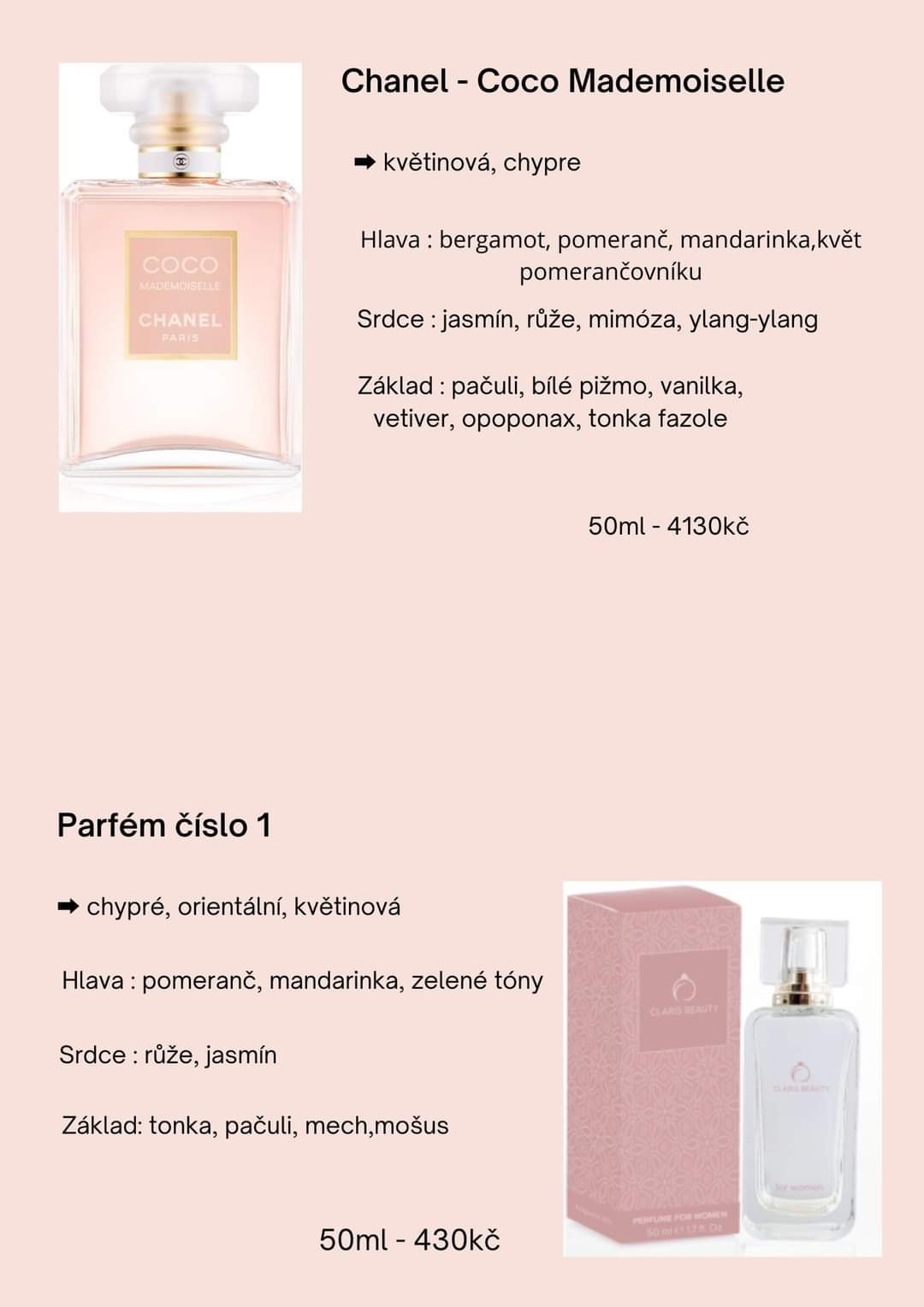 - Parfém číslo 01 – dámský (inspirace Chanel Coco Mademoiselle)